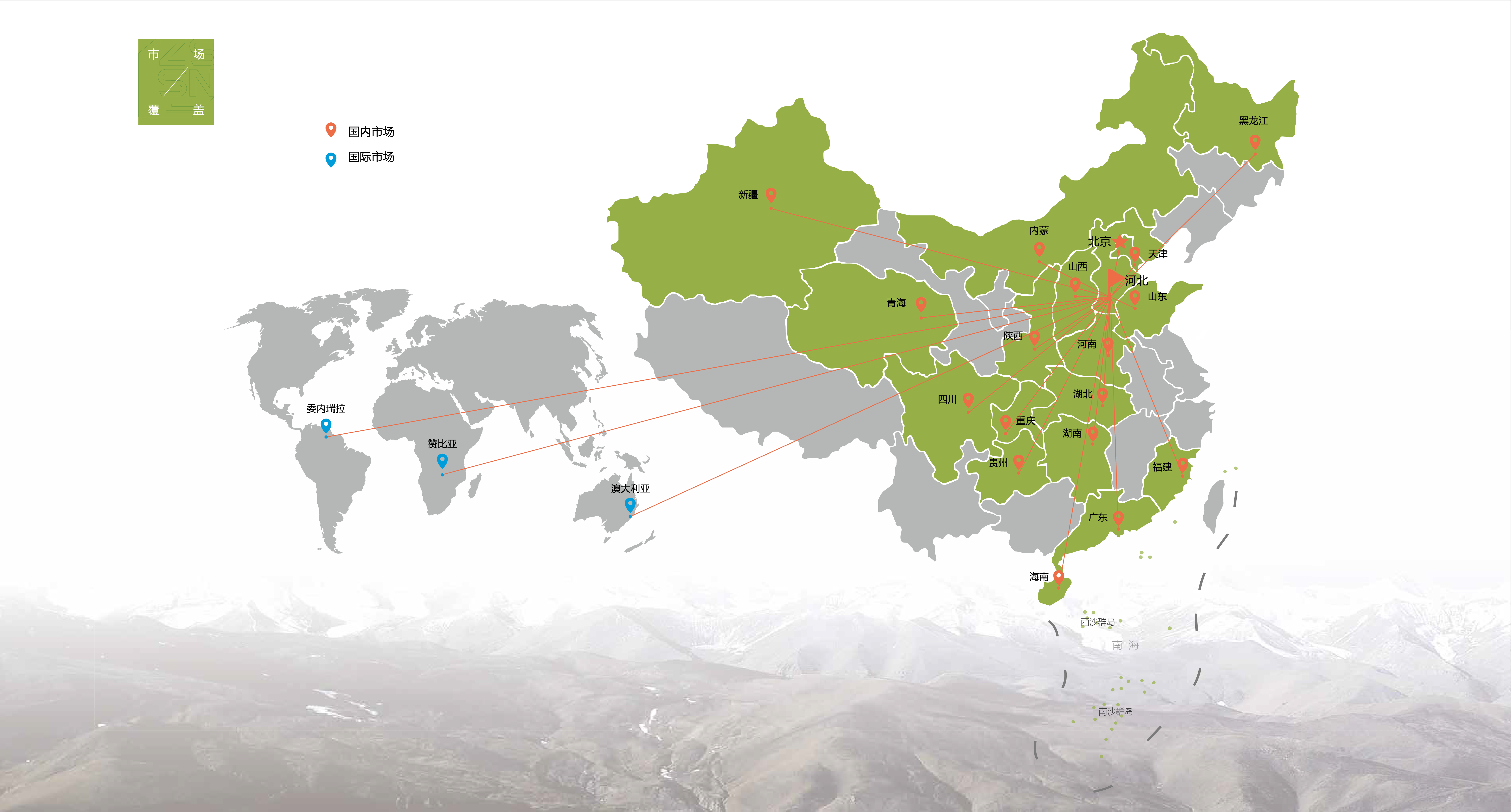 業(yè)務(wù)輻射——國內(nèi)的華北五省區(qū)市、西北新疆、青海及河南、山西、山東、福建、廣東、海南等地,海外業(yè)務(wù)延伸至澳大利亞、贊比亞、委內(nèi)瑞拉等國家,